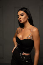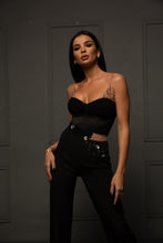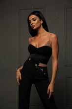 Compleu din doua piese format din top si pantalon,cu accesorii aplicate pe ambele piese