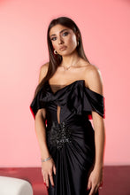 Rochie Lunga Drapata cu Detaliu din Cristale, Black Maryllis