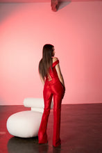 Pantaloni cu talie inalta si croiala usor evazata. Linia frontala este accentuata de cusaturi verticale care alungesc vizual silueta, iar constructia taliei urmareste linia corpului pentru o potrivire precisa. Materialul satinat ofera un efect discret lucios si un aspect elegant.