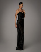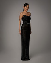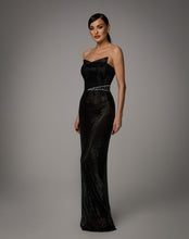 Rochia Nocturna Allure este realizata din material cu textura stralucitoare, care reflecta discret lumina si contureaza silueta intr-o linie eleganta si alungita. Designul fara bretele pune in evidenta umerii si decolteul, iar talia este accentuata de un detaliu decorativ fin, care adauga un punct de interes subtil. Croiala urmeaza linia corpului si cade fluid pana la podea, oferind un aspect rafinat si modern.